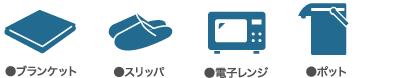 ブランケット、スリッパ、レンジ、ポットは店内共有部にございます。ご自由に利用ください。