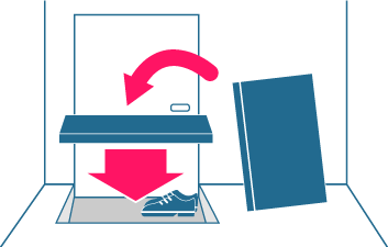 ドア横等に立てかけてあるハメ板は、靴置きの上へはめ込んでください。より広くお部屋をご利用いただけます。