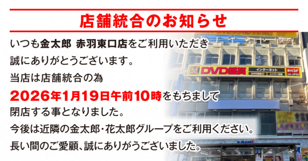 金太郎 赤羽東口店 店舗統合のお知らせ