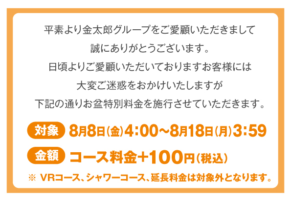 ※週末料金実施店舗は期間中、週末料金での営業となります